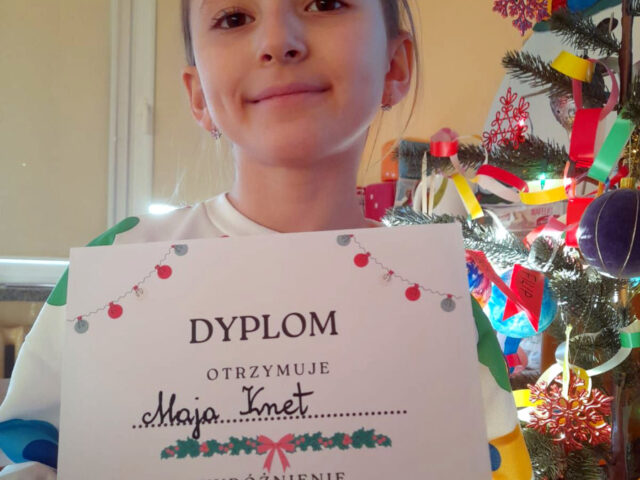 Maja Knet z grupy przedszkolnej OB otrzymała wyróżnienie w konkursie plastycznym” ŚWIĄTECZNE DRZEWKO” organizowanym przez Przedszkole nr 2 w Tucholi.Serdecznie …