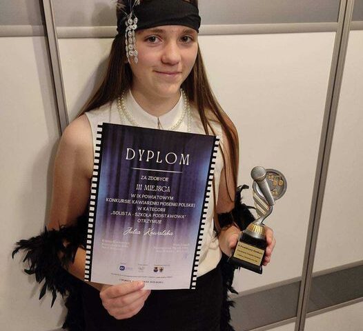 Julia Kowalska z klasy VI zachwyciła Jury i publiczność wyśpiewując III miejsce podczas IX Powiatowego Konkursu – Kawiarenki Piosenki Polskiej …
