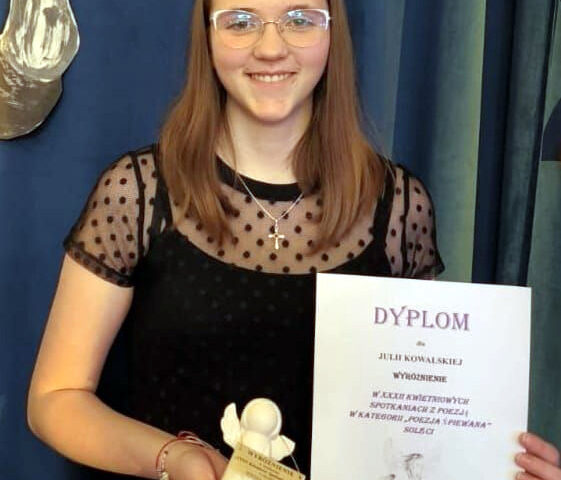 Julia Kowalska z klasy 7 podczas XXXII Kwietniowych Spotkań z Poezją jako najmłodsza uczestniczka konkursu wyśpiewała wyróżnienie. W tym dwudniowym, …