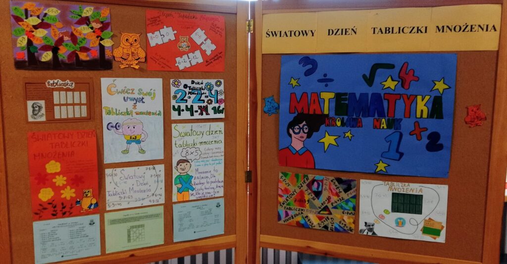 Dziś w naszej szkole świętowaliśmy Światowy Dzień Tabliczki Mnożenia- i działo się naprawdę dużo! Na holu oraz I piętrze można było podziwiać kolorową galerię prac naszych uczniów, którzy udowodnili, że matematyka potrafi być nie tylko logiczna, ale i… całkiem artystyczna! W czasie długich przerw krążyli nasi dzielni,, egzaminatorzy ” w żółtych i zielonych kapeluszach. Zadawali pytania z tabliczki mnożenia (albo pozwalali wylosować zestaw pytań dla odważnych), a za poprawne odpowiedzi nagradzali słodkim lizakiem. Bo kto powiedział, że matematyka nie może trafić do serca… przez żołądek?