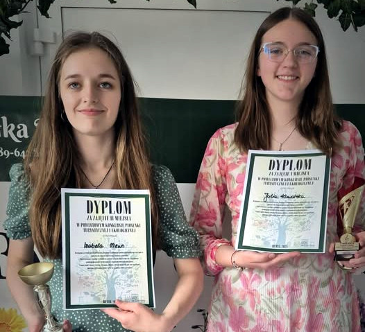Nasze wokalistki cudownie zaprezentowały się podczas Powiatowego Konkursu Piosenki Turystycznej i Ekologicznej. Iza Mews z klasy 8b wyśpiewała II miejsce, a Julka Kowalska z klasy 7 zajęła I miejsce. Organizatorem wokalnych prezentacji było Gminne Centrum Kultury w Czersku. Życzymy dalszych sukcesów!